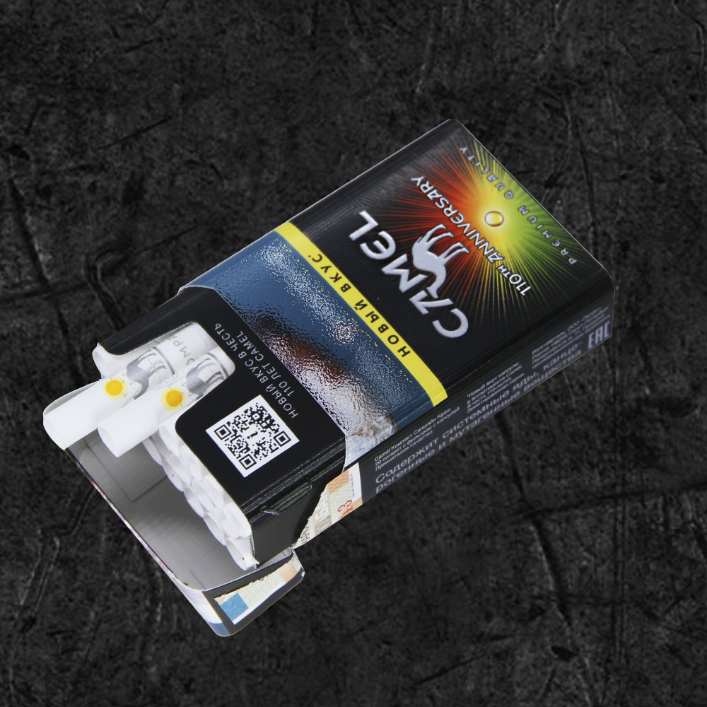 • Иконичный дизайн упаковки: логотип с верблюдом на фоне пирамид и пустыни не только запоминающийся, но и символизирует приключения и экзотику, что привлекает многих курильщиков.